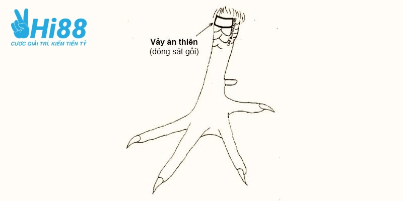 Hình dáng của vảy án thiên tương đối giống với phủ địa, cũng nằm ở phần dưới sát đầu gối. Đây là một miếng da khô nằm ở vị trí trên cùng của chân kê.